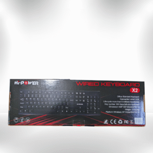 The Hi Powerd X2 Wired Keyboard is designed for efficient and comfortable typing for both office and home use. Its full-size layout with responsive keys ensures smooth and accurate keystrokes, making it ideal for work, gaming, or general computing. The wired USB connection provides stable and reliable performance without lag or interference. With an ergonomic design, the Hi Powerd X2 reduces strain during extended typing sessions, combining durability, comfort, and functionality in a sleek, professional keyboard.